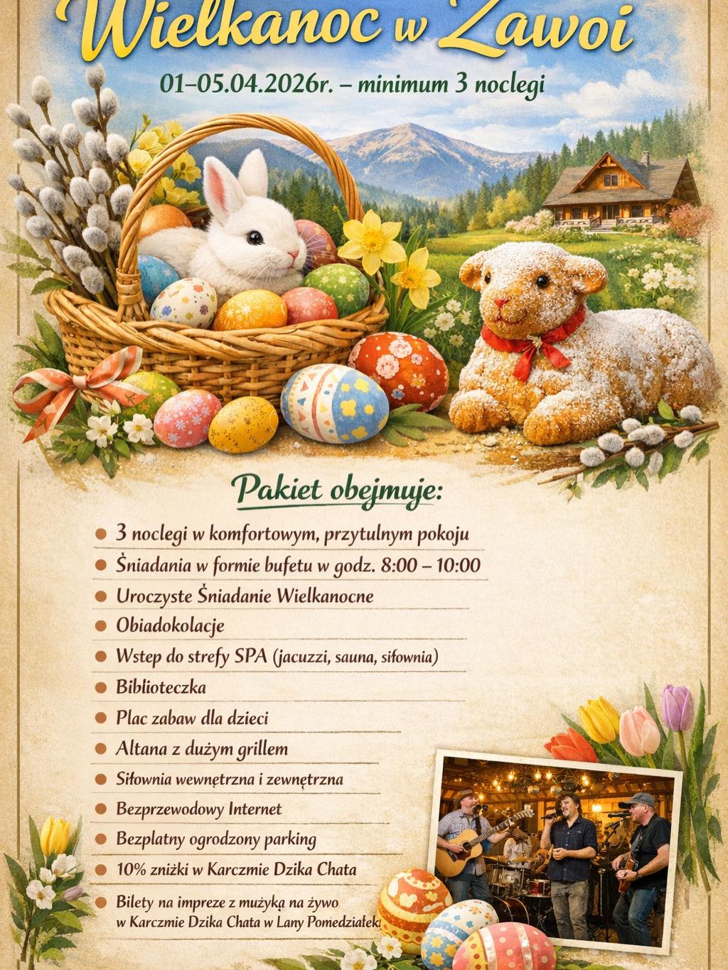 Oferta obowiązuje w terminie 01-05.04.2026r. – minimum 3 noclegi